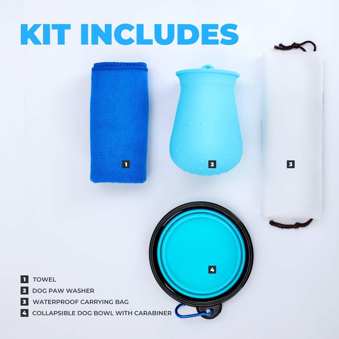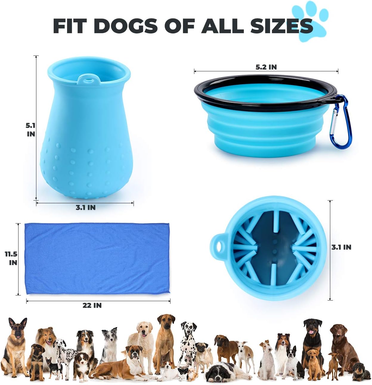 Dog Paw Cleaner, Tikaton Walking The Dog Set with Dog Paw Washer, Collapsible Dog Bowl & Water-proof Storage Bag (Blue)