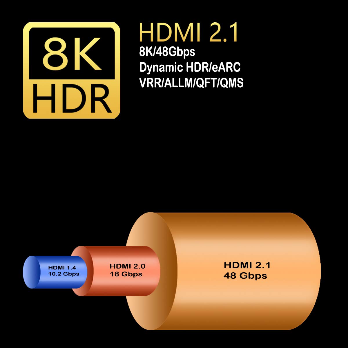 Tikaton HDMI 2.1 Cable, 48Gbps Ultra High Speed 8K, Backward Compatible 4K HDMI 2.0 – (6.6 feet)