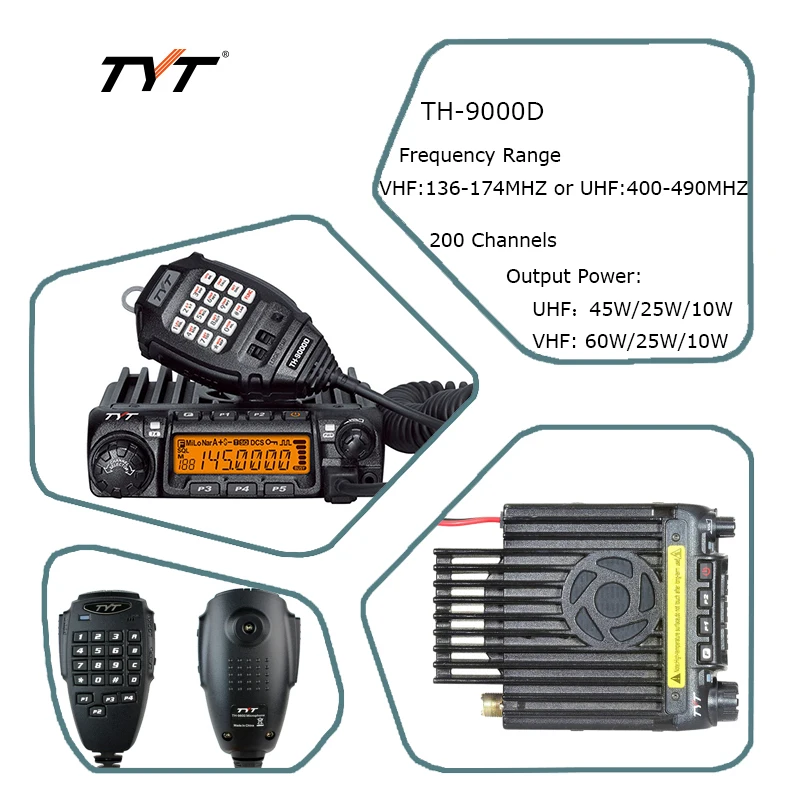 TYT Mobile Car Radio TH-9000D Walkie Talkie Ham Radio VHF136-174MHz or UHF400-490MHz or 220-260Mhz Walkie Talkie 60W/45W