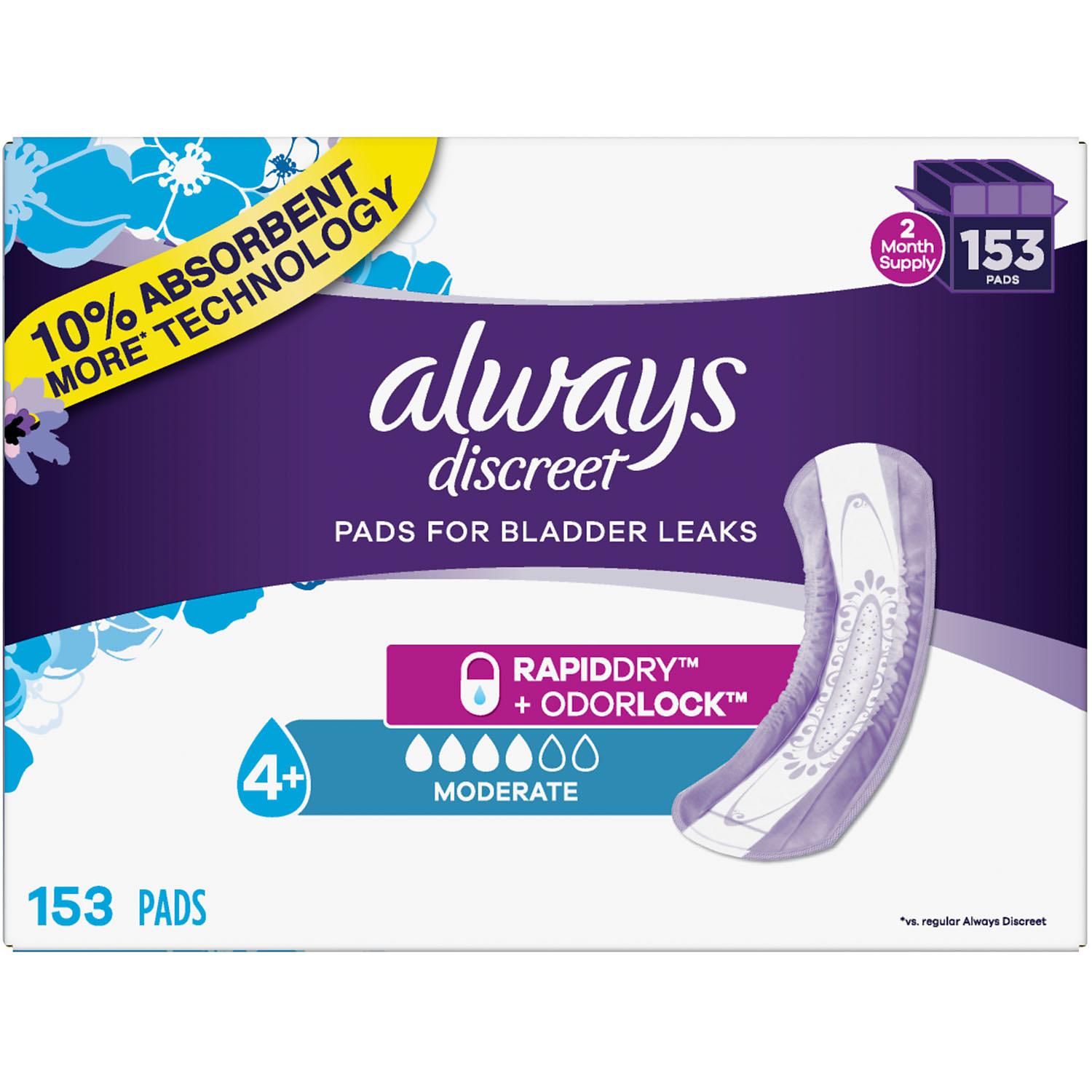 Always Discreet Incontinence Pads, Moderate Absorbency (153 ct.) This item is NEW.