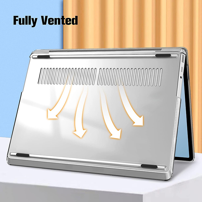 【Schlank & Leicht】2 Teilige, ultradünne leichte Schale, vollständig abnehmbar, leicht an- und auszuschalten. Befinden sich auf der Unterseite Lüftungslöcher, Voll belüftet für eine sichere Wärmeabführung. 4 Gummifüße halten Ihr Laptop stabil und sicher.
