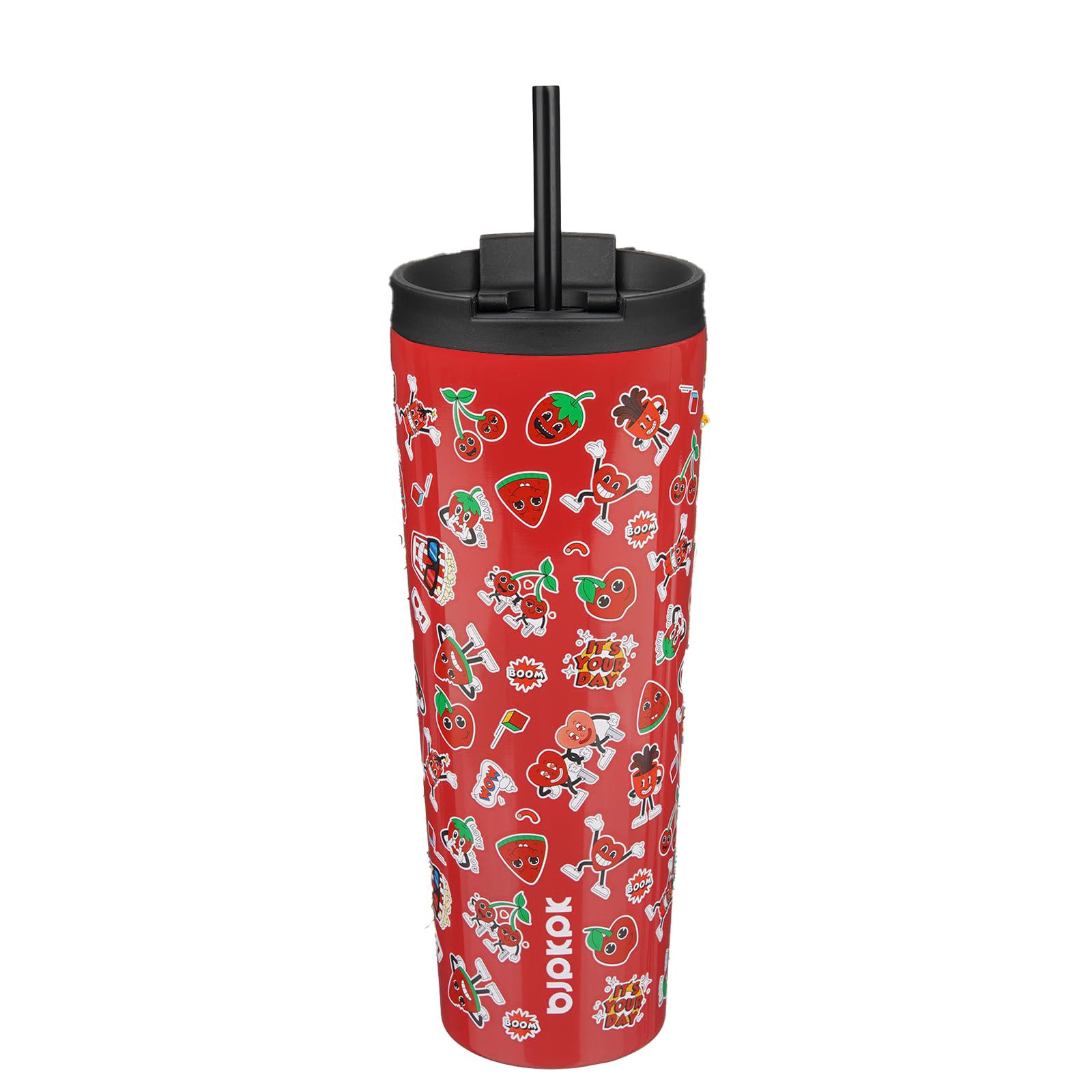 Stainless steel tumblers with straw! Made with quality 18/8 food grade metal, these double-walled vacuum insulated tumblers can keep your drinks hot or cold for hours. They'll have no problem fitting into car cupholders due to their sleek, tapered design. Comes with two reusable straight straws for those busy days. It features a 2-in-1 screw-on lid, where you have the option to insert a straw through the middle or drink straight from the lip. Do remember not to flip the tumbler upside down when it's filled with liquid as the straw connection might leak. Excellent for everyday use – at work, for sports, during travels, camping and more. They also make great gift options!