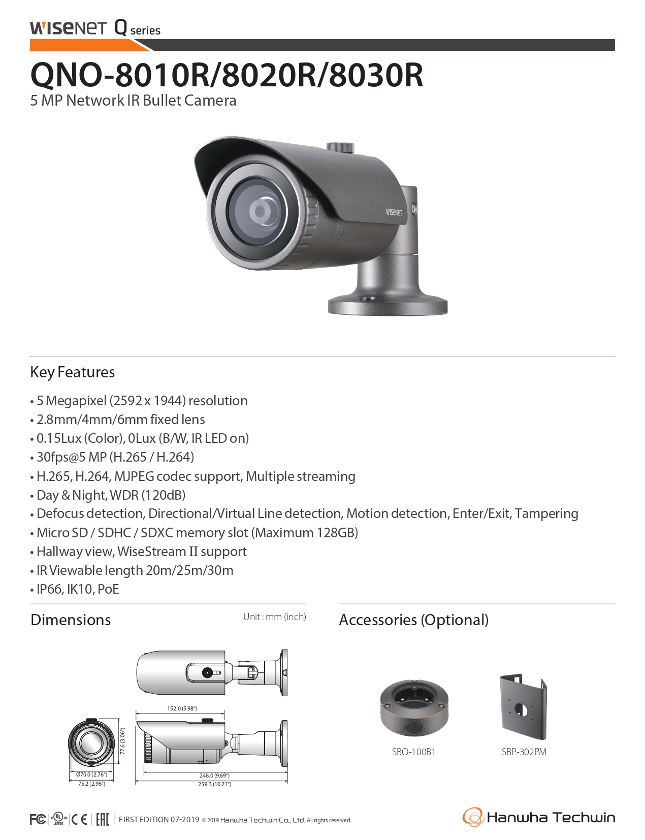 (104°), triple codec H.265/H.264/MJPEG with Wisestream II, 120dB WDR, IR LEDs
