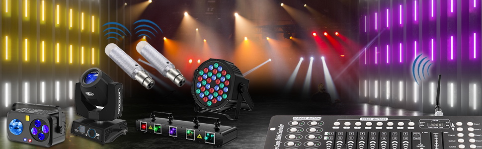 Control mode: controlled by DMX512 console. Transmitter (male) plugged into the dmx console, receiver (female) plugged into the fixture.