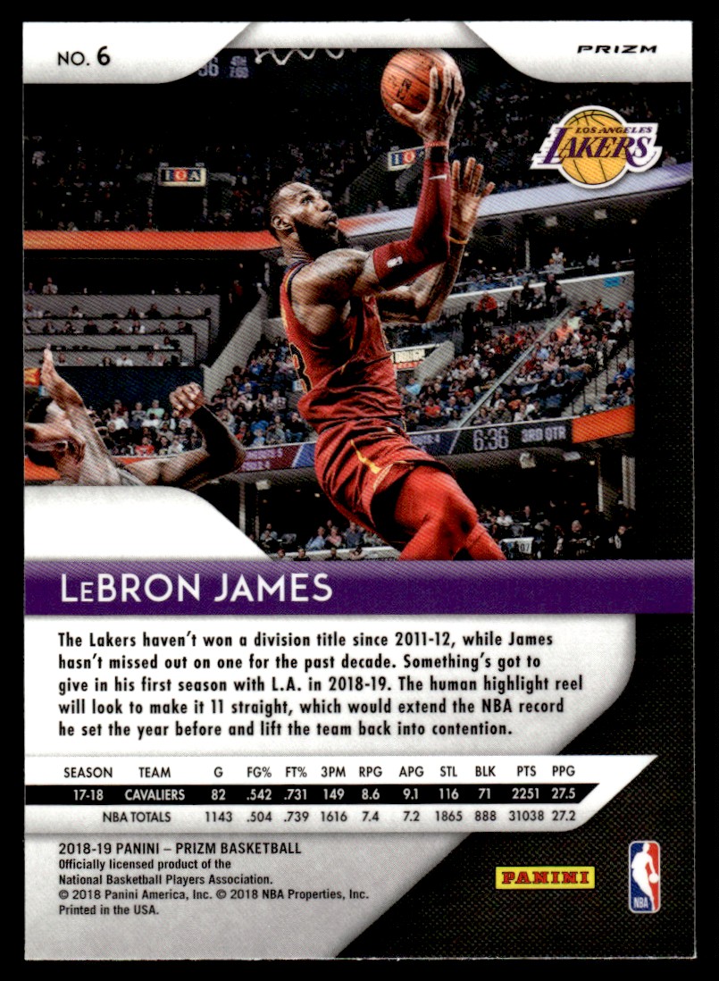 | LeBron James 2018-19 Panini Prizm Prizms Green #6 Card Los Angeles Lakers |