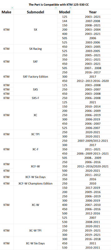 - For KTM 125-530CC All Models 2003-2023 (Do Not Include 380 390CC )
