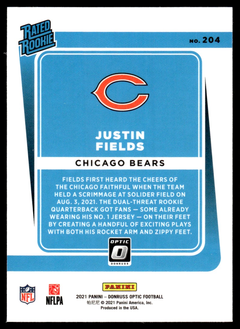| Justin Fields Rookie 2021 Donruss Optic Rated Rookie #204 NFL Card Chicago Bears |