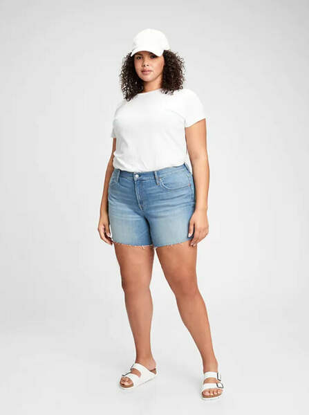 Gap Women 5'' Mid Rise Denim Shorts With Washwell Color : Medium Indigo