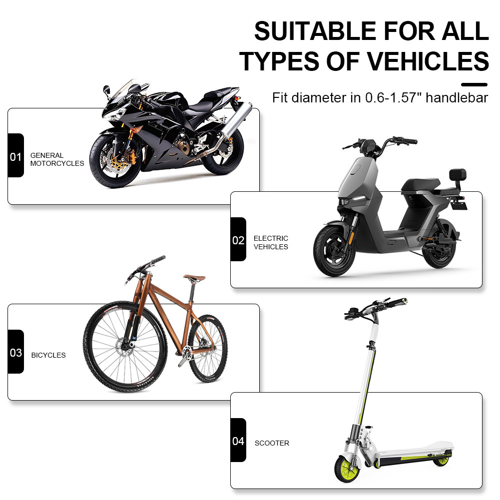 This bike phone mount comes with silicone pads that keep your phone from scratches and vibration. The motorcycle phone mount holds your phone perfectly when cycling. Also with up and down linkage phone clamp, can easy install the phone into the phone clamp.