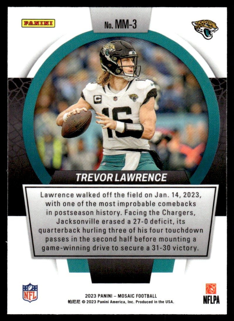| 2023 Mosaic Men of Mastery Trevor Lawrence Jacksonville Jaguars #MM-3 |