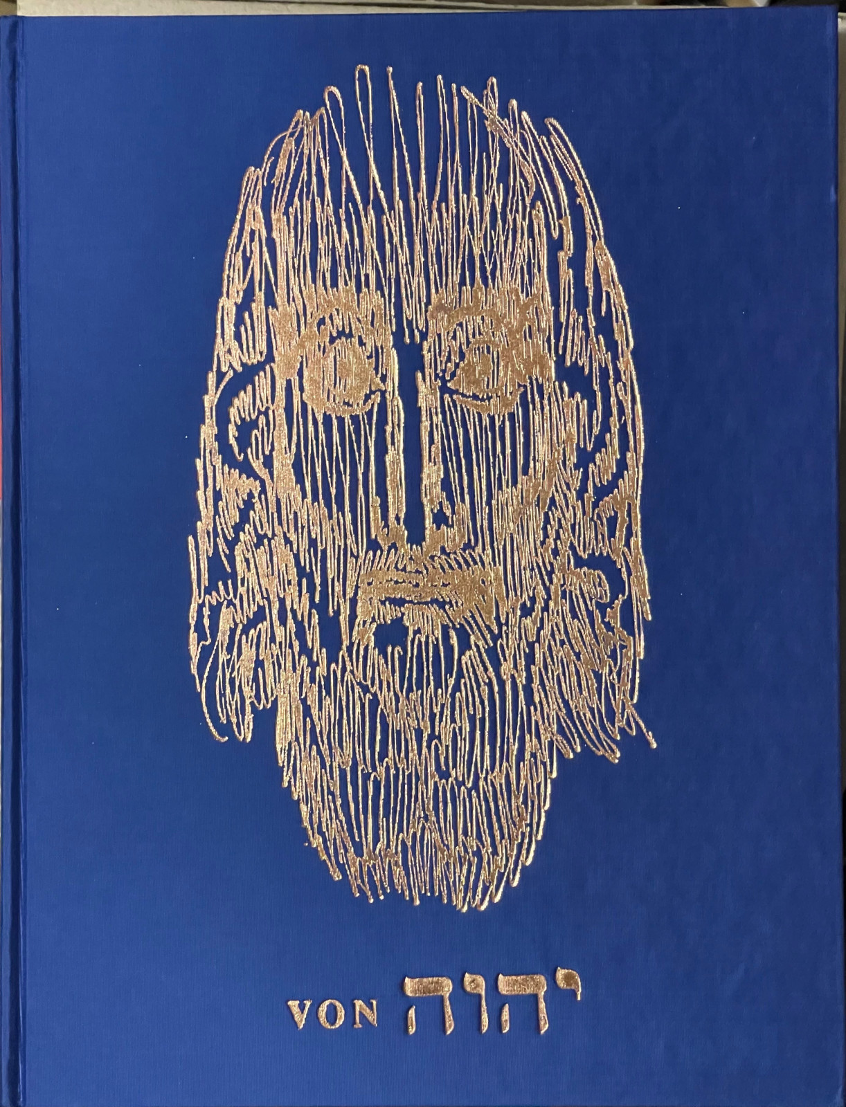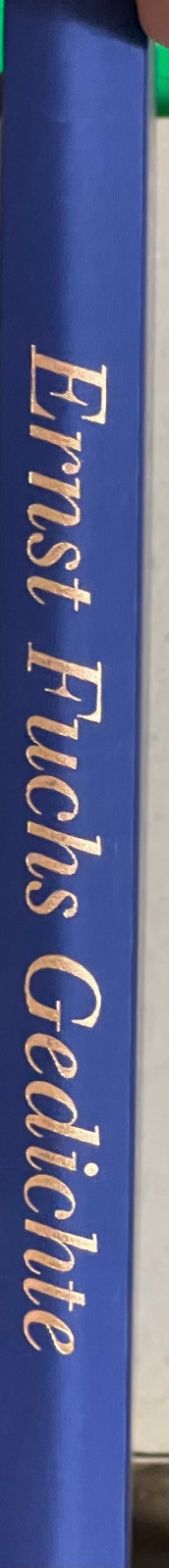 Blauer Seideneinband mit Goldprägung nach einem Entwurf von Ernst Fuchs.
