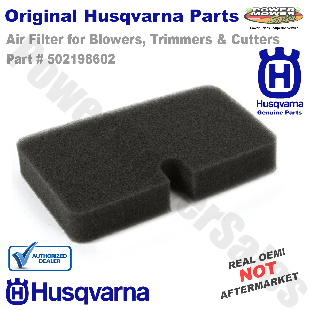 This is a genuine OEM Air Filter which is supplied for use with Husqvarna Blowers, Trimmers & Cutters. This item provides an identical replacement for a damaged or a missing part that was installed on a new unit. Please refer to your original owner's manual or on the appropriate parts diagram of your model for correct location and fitment of this item. Keep Your Equipment Running Like New with Our Top of the Line, High-Performance Original Equipment Manufacturer Replacement Parts!