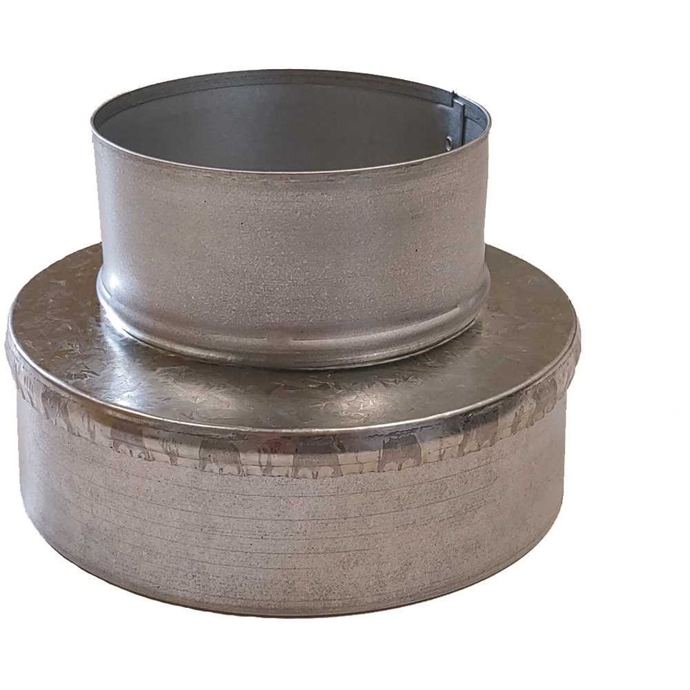 The Master Flow 26 Gauge 7 in. x 6 in. Flat Reducer is made OG galvanized steel. Its short length makes it ideal for tight spaces. The reducer is used to transition from a 7 in. pipe to a 6 in. pipe system. It is suitable for most HVAC applications.