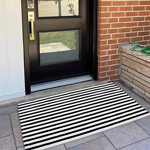 Our black and white striped rug is the perfect way to convey your to your guests! Makes the perfect combination with welcome doormats! Receive your guests with elegance! Feature: *45% cotton | 45% polyester | 10% viscose *Hemmed edges provide long-lasting wear. *The perfect custom entry rug for a warm, bold decor theme. *Create an inviting, classic entryway for your home. *Standard size, different sizes to fit most doors and accommodate our standard-size doormats for easy layering. 100% SATISFIED CUSTOMER SERVICE: It is our commitment to provide our customers with Top Grade products and services, if you have any questions, please feel free to contact us first, We will meet your all request, and return or refund is available, make you satisfied.