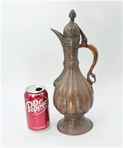 The teapot displays beautifully and has all over age and use related wear. It looks like it was originally gilded with the gilt now all worn off with just a few traces here and there. There are repaired holes and cracks to the body and lid as well as various random dings. Please check all the pictures, they form part of the condition report.