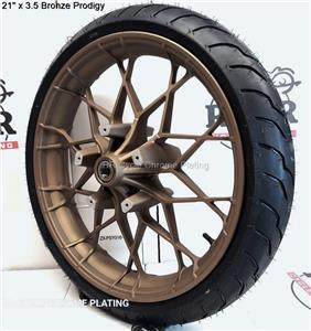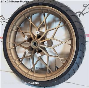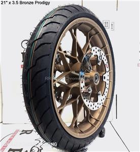 These are Brand New Prodigy Wheel .This wheel is a Duplicate of the 19 " Prodigy Wheel that Harley Manufactures . We are not responsible if the color is a different shade of bronze