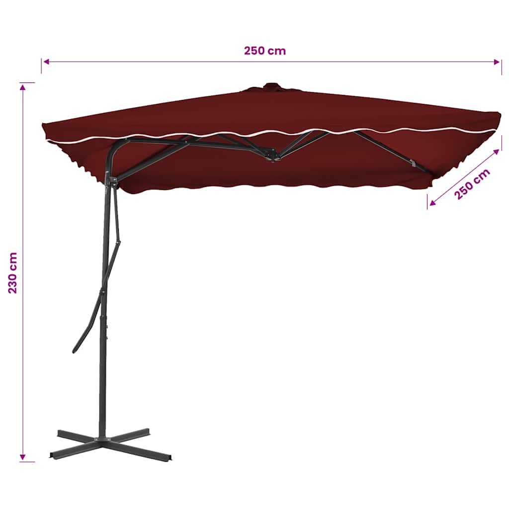 This garden parasol is designed to transform your outdoor space. With a generous size of 98.4x98.4 in, it offers plenty of shade. Great for balconies, patios, or gardens, its bright bordeaux red color adds a touch of flair while keeping you safe from harmful UV rays. Perfect for chilling outside, whether you're reading or hosting a summer bash.