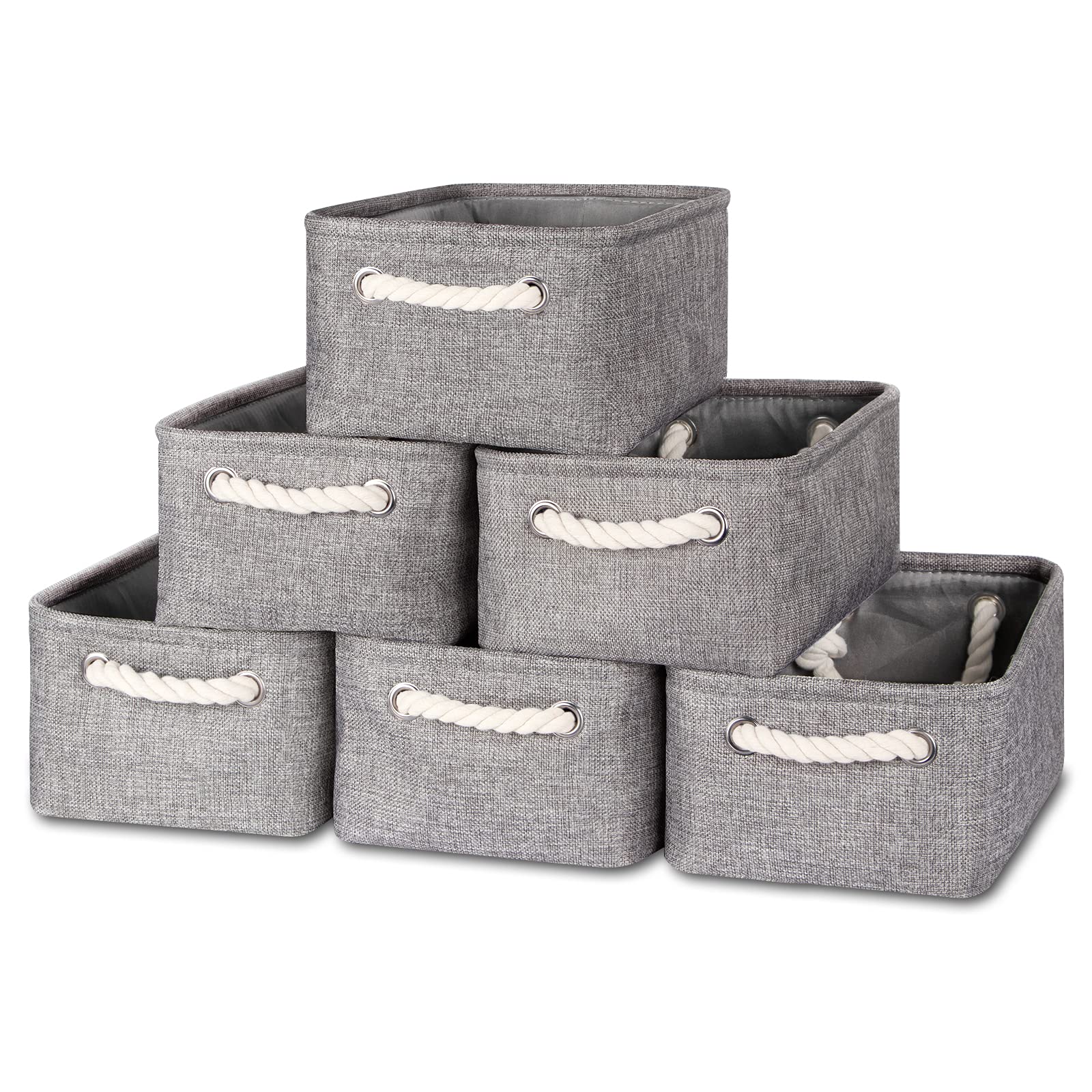 Small Gray Baskets Set of 6 Fabric Storage Bins with Handles 11.8 x 7.8 x 5 inch Collapsible Canvas Organizer Bins Baskets for Organizing Closet Shelf Storage(Grey)