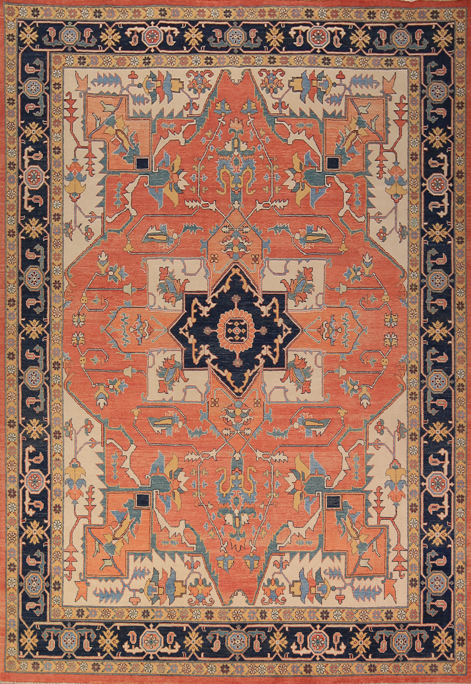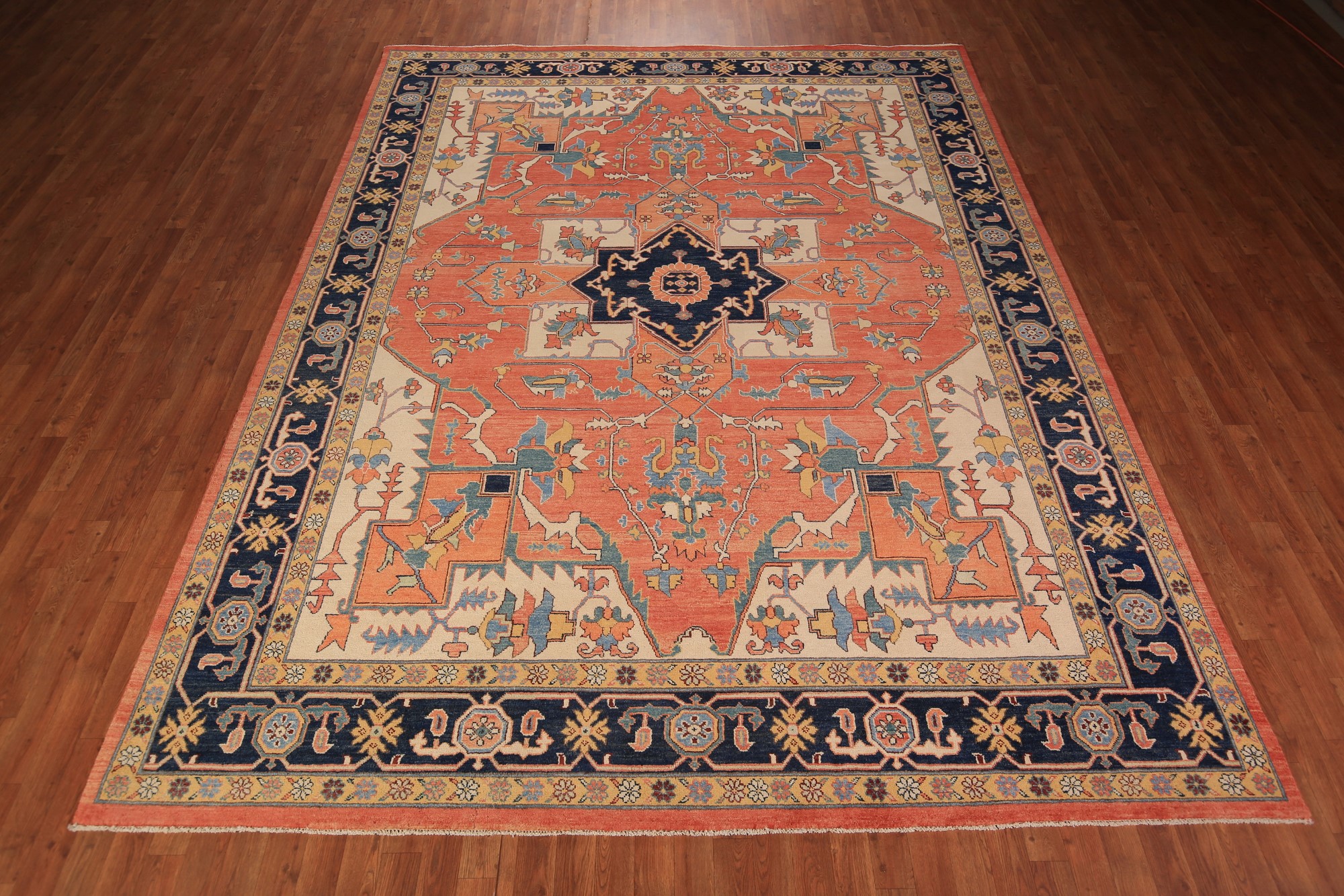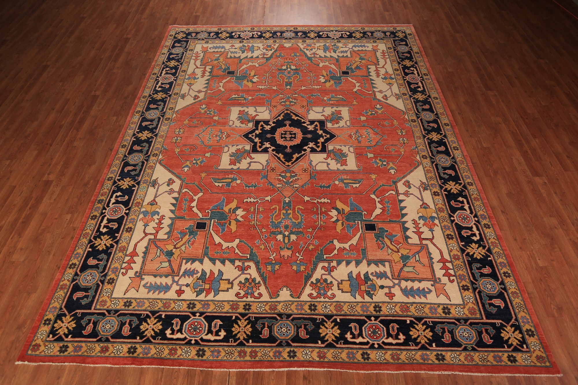 Rust Heriz Serapi Beauty Hand-made Oriental Living Room Carpet in Wool 9x11 ft