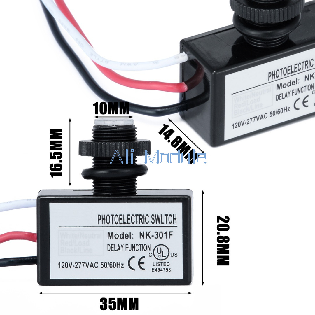 CE Certification,UL Certification. Small volume light controller is easy to install. Save energy,safe and reliable, long service life. This photocell sensor is perfect for street lights,wall packs, barn lights and any other outdoor fixture that you need to have a dusk to dawn feature. Internal IC import components,program control circuit anti-interference design, outdoor same light perception conditions,multiple sensors synchronous opening, induction precision, high sensitivity. Specifications: Voltage Range: AC 80V~277V Rated Voltage: AC 120V/220V Rated Load: 200W/400W Rated Frequency: 50/60Hz Power Consumption: 0.5 Max Sensitivity:10-20LUX On / 40-70LUX Off Anti-jamming Delay: About 12 Seconds Ambient Temperature: - 25℃ ~ + 70 ℃ Relative Humidity: 99% RH Inductive Head Rain Proof Grade: IP65 Working Life: More Than 5000 Times Lead Length:150mm(AWG#18) Wiring Method: White Line + Black Line Connection (Input) White Line + Red Line Connection (Output) The White Line is the common line Note: Please allow 1-3mm error due to manual measurement. pls make sure you do not mind before you bid Due to the difference between different monitors, the picture may not reflect the actual color of the item. Thank you! Package Includes: 1 x Photoelectric Switch |