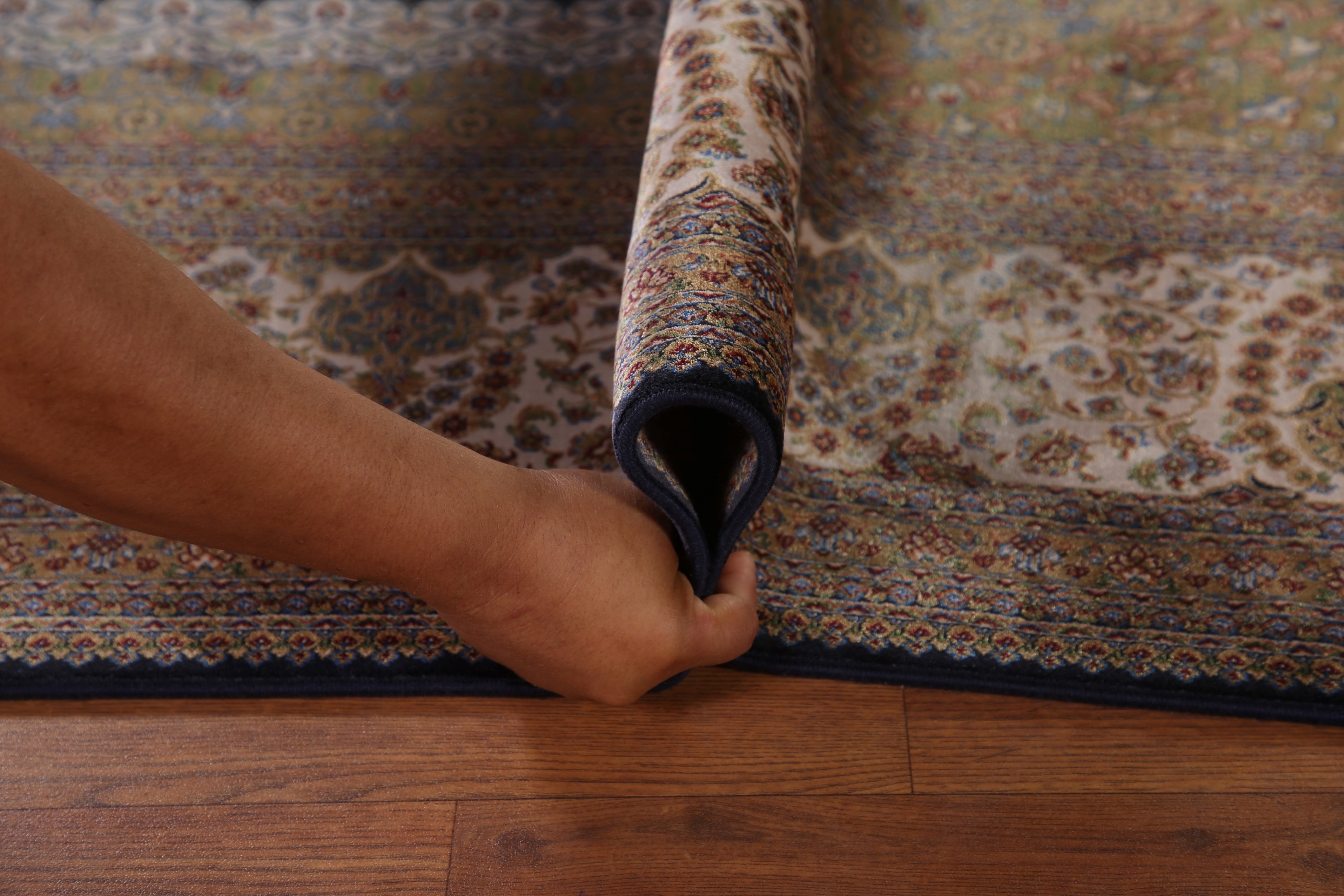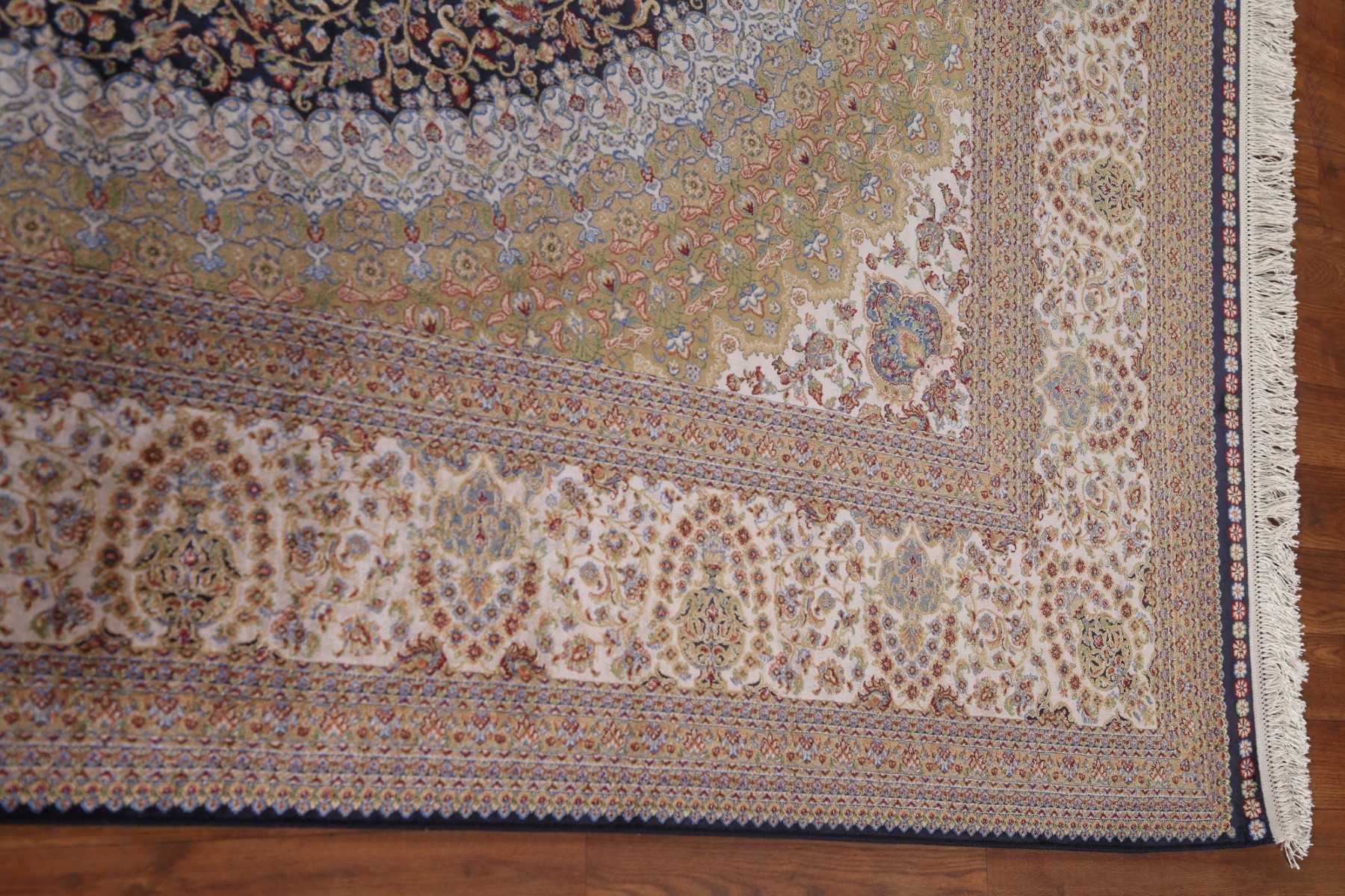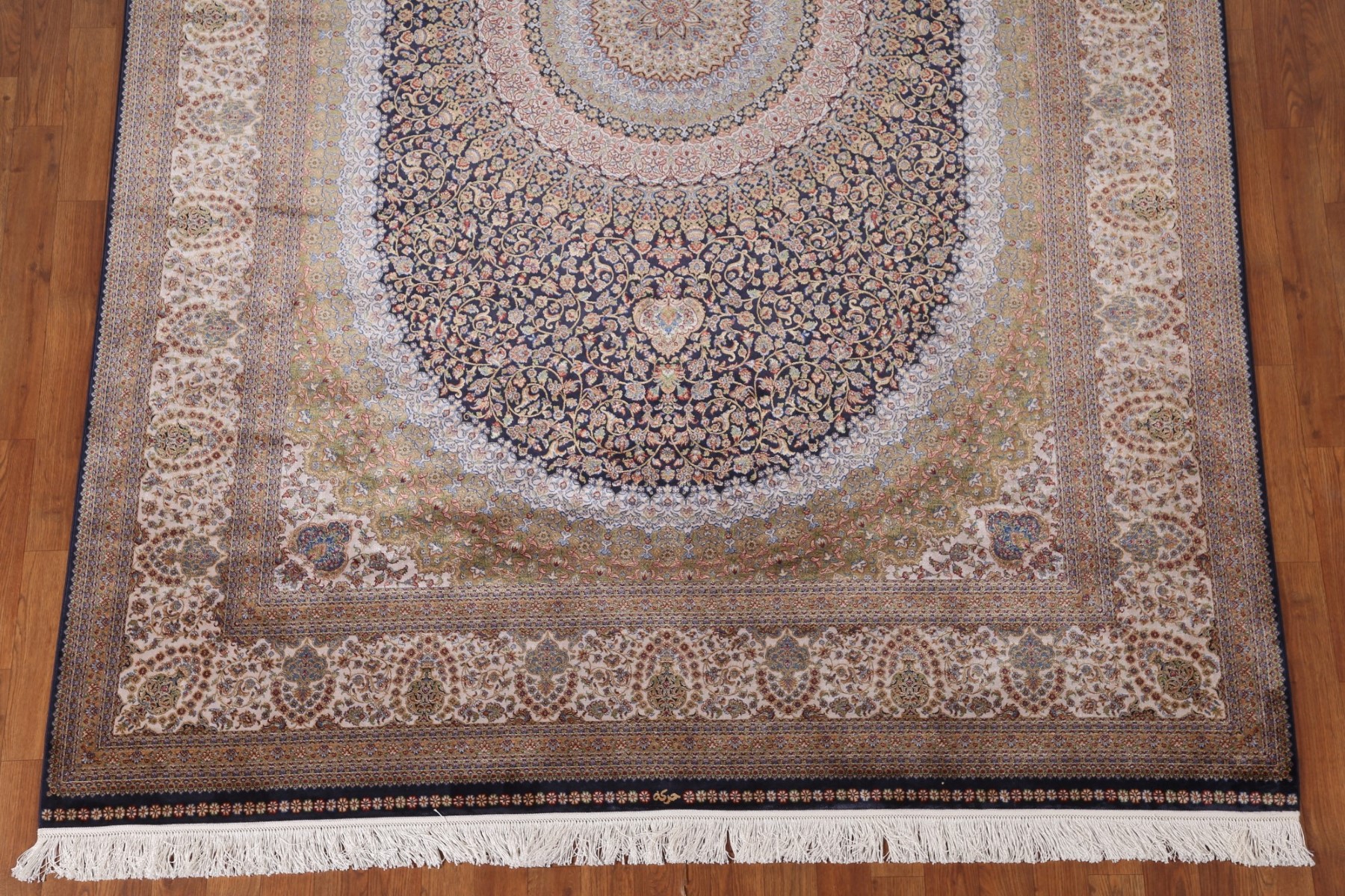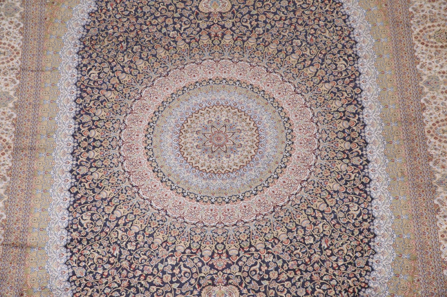 Silk Navy Blue Floral Traditional 7x10 ft Area Rug Living Room Rug