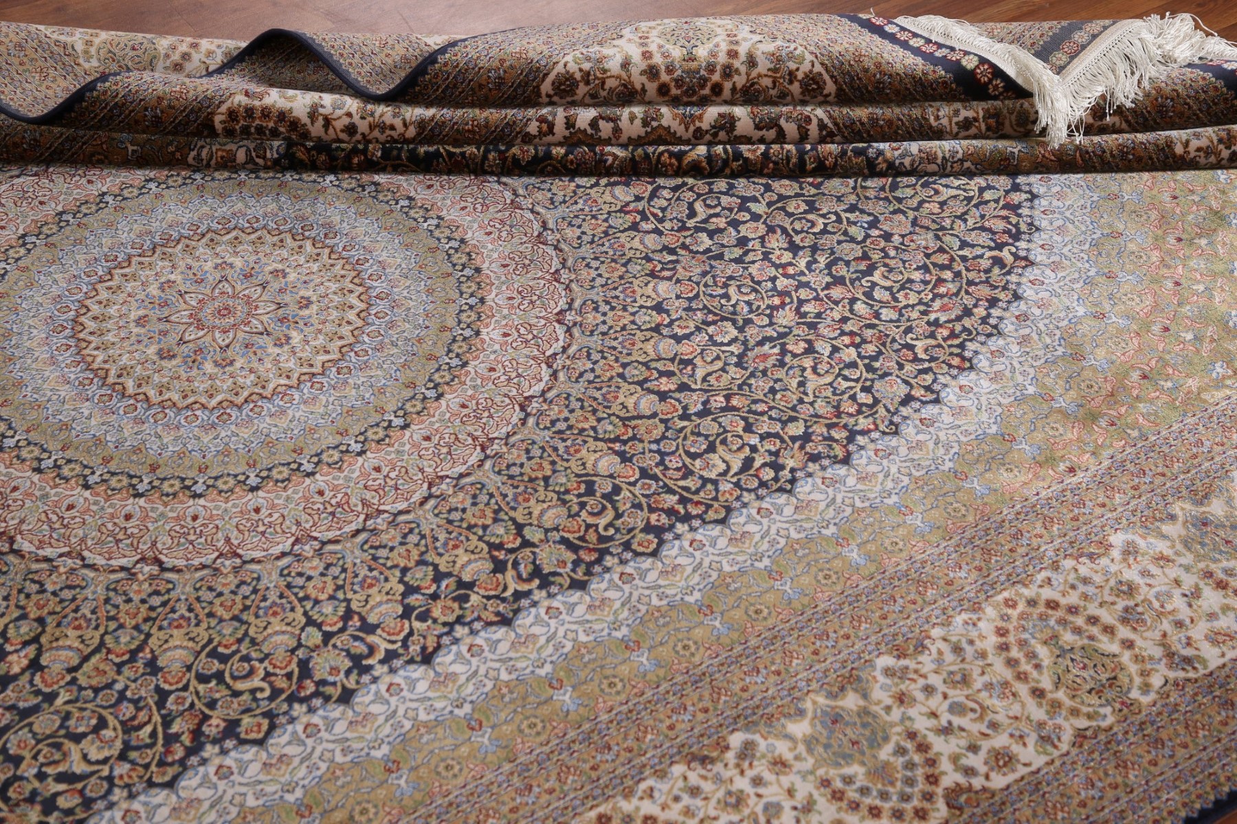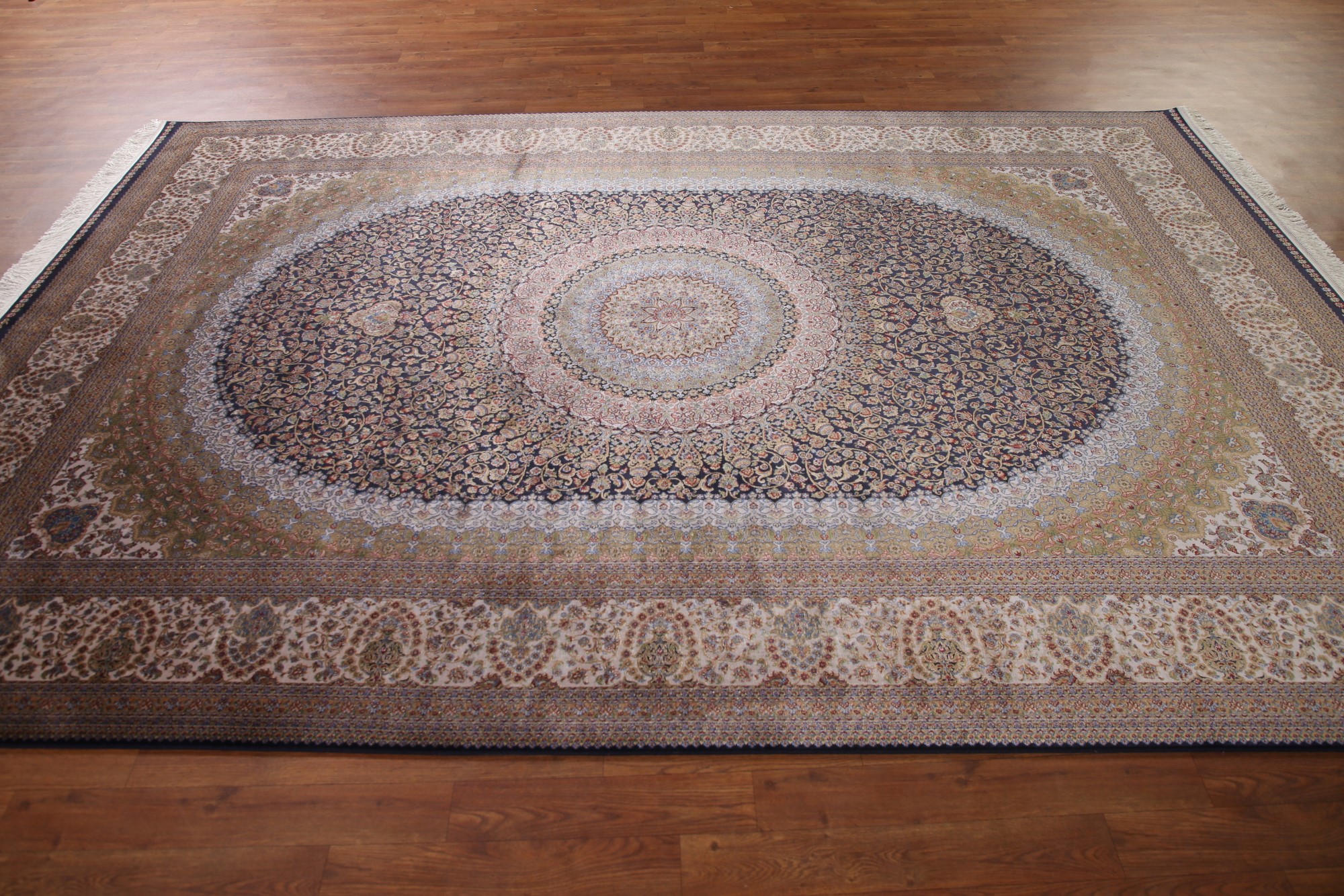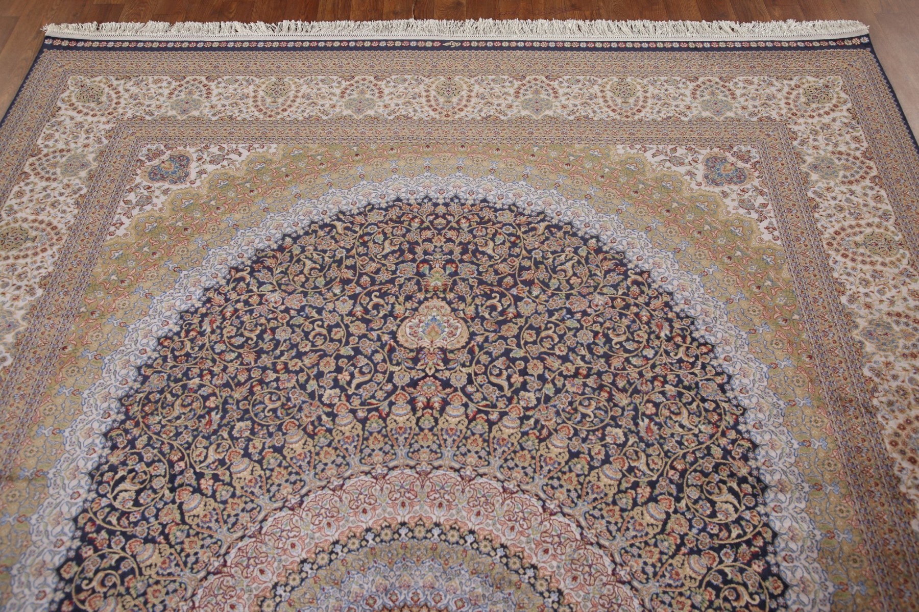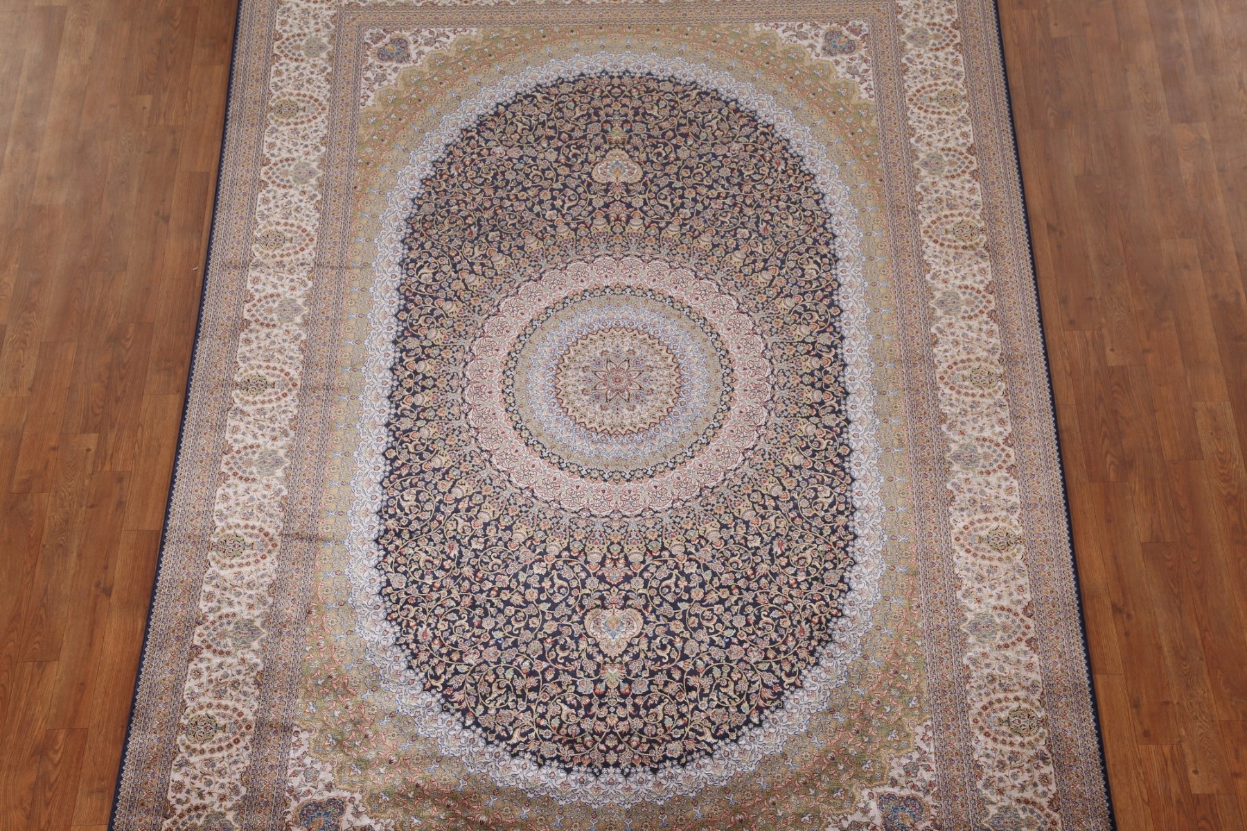 Silk Navy Blue Floral Traditional 7x10 ft Area Rug Living Room Rug