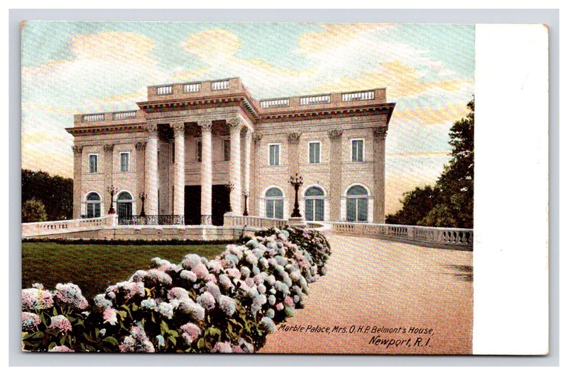 You are looking at a: RI Marble Palace, Mrs O H P Belmont's House, Newport, Rhode Island postcard that is unposted. The postcard is in great shape.