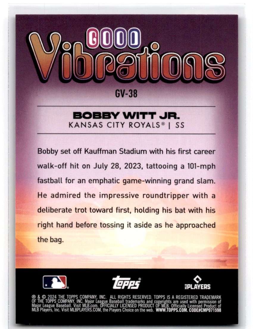 | 2024 Topps Big League Good Vibrations Bobby Witt Jr. Kansas City Royals #GV-38 |