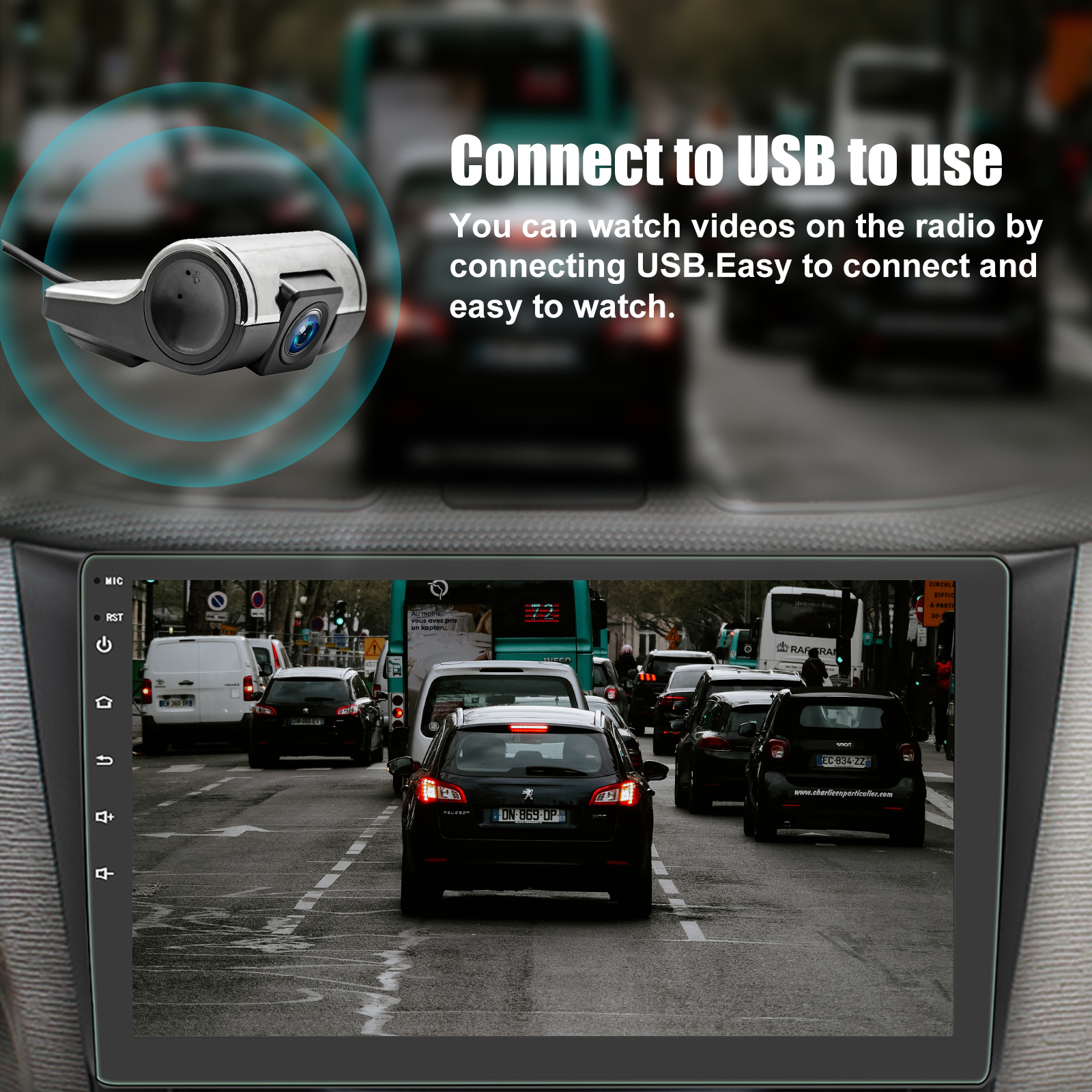 9 Inch 2 DIN Android Car Radio: The Android car radio with 9 inch capacitive touch screen, 4GB (RAM)+64GB (ROM) provides enough space to download your favourite apps and videos, so driving won't be boring anymore. With two USB ports, it supports fast mobile phone charging. With the rear microphone input, you can add a microphone to make your voice clearer (not included).