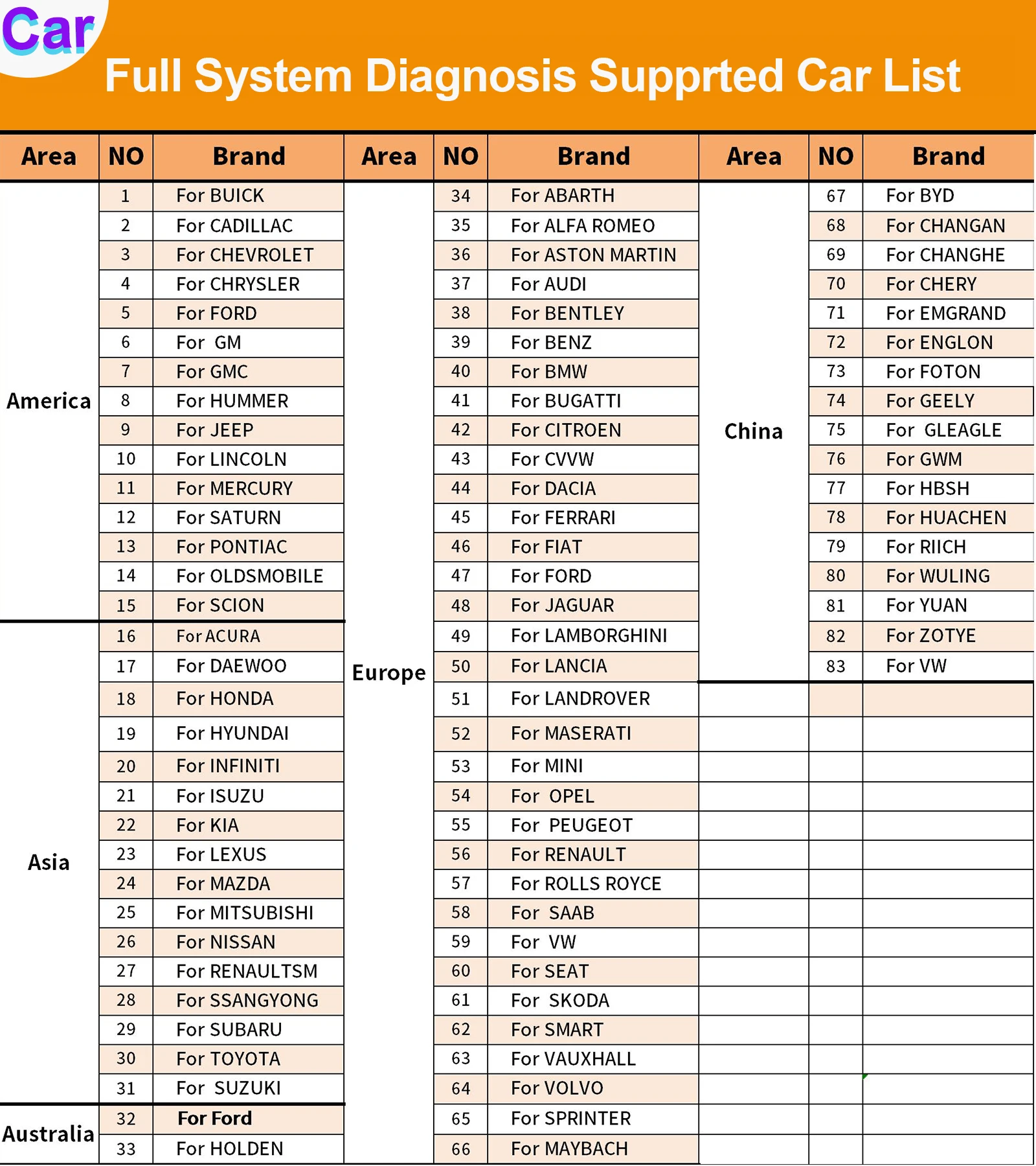 For Abarth, For Alfa Romeo, For Aston Martin, For Audi, For Bentley, For Benz, For BMW, For Bugatti, For Citroen, For CVVW, For Dacia, For Ferrari, For Fiat, For Ford, For Jaguar, For Lamborghini, For Lancia,For Landrover, For Maserati, For Mini, For Opel, For Peugeot, For Renault,For Rolls Royce,For Saab, For VW, For Seat, For Skoda, For Smart, For Vauxhall, For Volvo