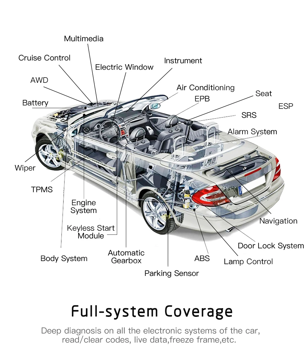 Comes with basic OBD2 functions for other models that do not support full system diagnosis