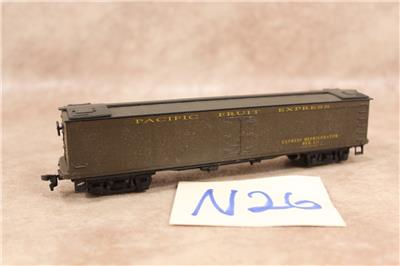 THIS IS A NICE HO SCALE REEFER CAR IN GOOD AS IS CONDITION. IT MIGHT NEED A LITTLE CLEANING, HAVE DAMAGE AND OR MISSING PARTS. IT MEASURES ABOUT 7 1/4 INCHES LONG, ABOUT 1 3/8 INCHES WIDE AND STANDS ABOUT 2 INCHES TALL. YOU KNOW WHAT YOU'RE LOOKING FOR SO PLEASE EXAMINE THE PHOTOS CLOSELY BEFORE BIDDING WHERE THEY ARE A HUGE PART OF THE DESCRIPTION AND WHAT YOU SEE IN THE PHOTO IS WHAT YOU GET. THERE SHOULD BE SEVERAL PHOTOS SO SCROLL DOWN TO "SEE FULL DESCRIPTION" AND CLICK IF NOT SEEING THEM. IF LISTING NUMBER AND PHOTO NUMBER ARE NOT THE SAME PLEASE TELL ME. I DO COMBINE SHIPPING. IF YOU HAVE ANY QUESTIONS, PLEASE FEEL FREE TO ASK. THANK YOU FOR LOOKING AND GOOD LUCK WITH YOUR SEARCHES. Check out my other items! Be sure to add me to your favorites list!