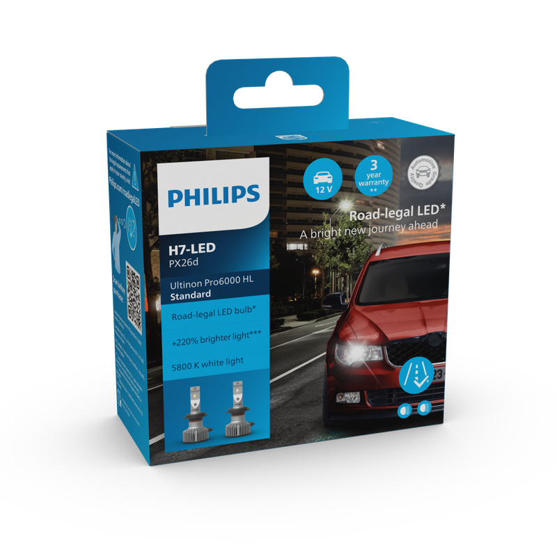 Mit der neuen Philips Ultinon Pro6000 H7-LED können Sie jetzt durch einen einfachen Lampenwechsel auf die geprüfte sichere LED-Technologie umsteigen. Wechseln Sie jetzt die Halogenlampen Ihrer Scheinwerfer mit der innovativen LED-Nachrüstlampen und erleben Sie bahnbrechende Helligkeit mit Straßenzulassung.