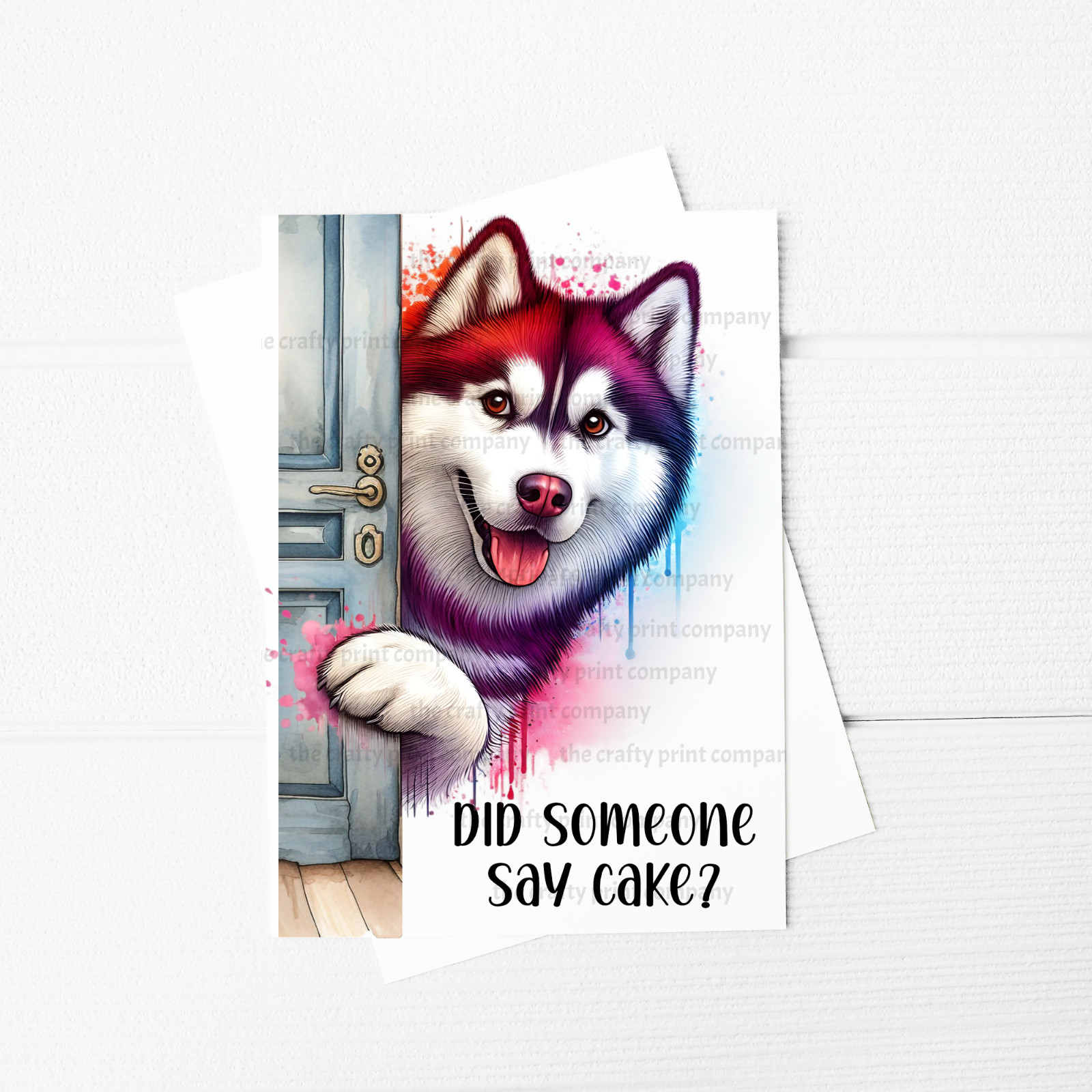 Did someone say cake? A5 Greeting Card with a Peeking Siberian Husky design on it