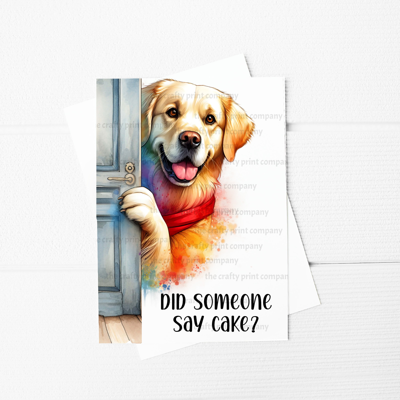 Did someone say cake? A5 Greeting Card with a Peeking Golden Retriever design on it
