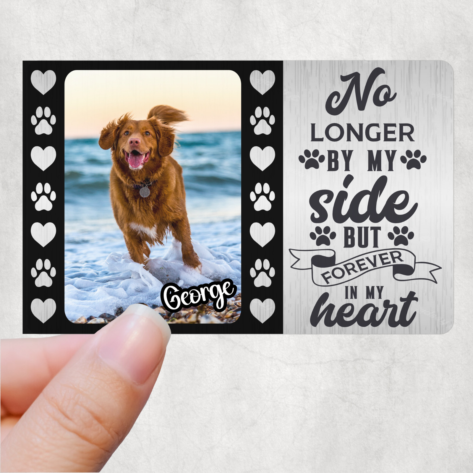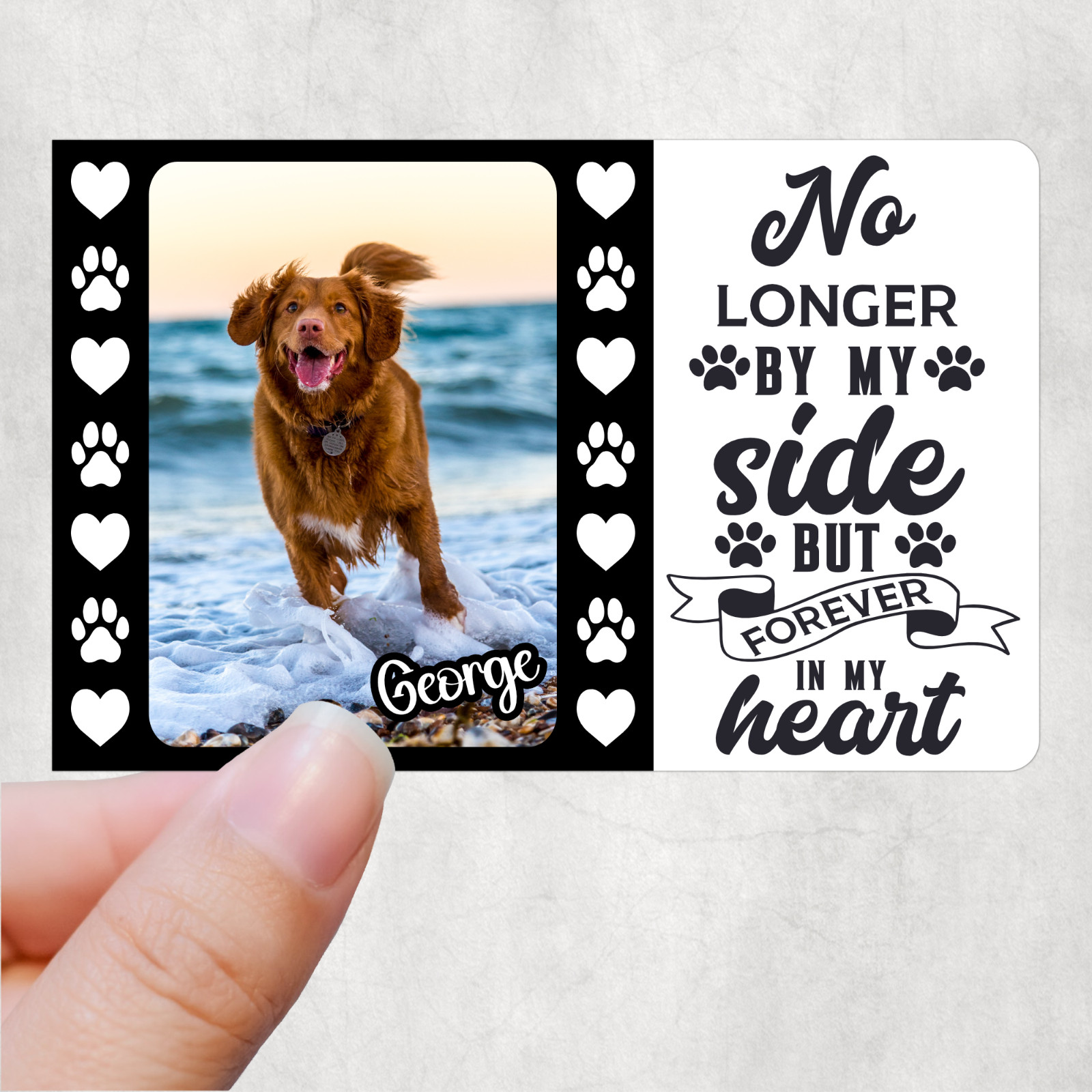 To make it personalised please fill in what pets name you want and send over the photoCredit Card Size: Width 54 mm x Height 86 mm