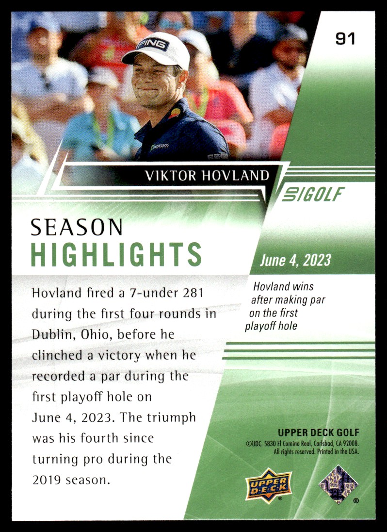 | Viktor Hovland Season Highlights 2024 Upper Deck Golf #91 UD Card |