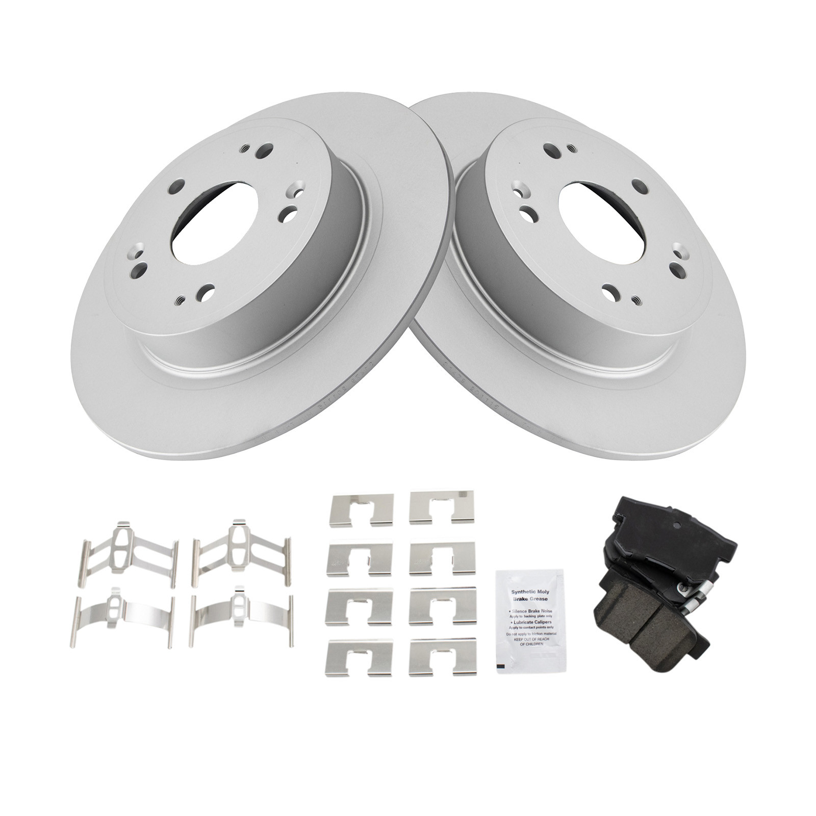Kit Includes:(1) Rear Ceramic Brake Pad Set with Contact Point Grease & Hardware, Kit Includes:(2) Rear G-Coated Brake Rotors