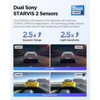 A229 Plus is the industry's first dashcam using two Sony STARVIS 2 IMX675 image sensors which offer 2.5 times wider dynamic range and higher light sensitivity than the STARVIS tech, bringing much less noise and motion blur during day & night recording.