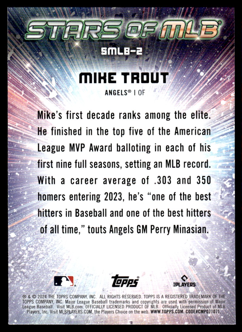| 2024 Topps Series 1 Stars of MLB Mike Trout Los Angeles Angels #SMLB-2 |