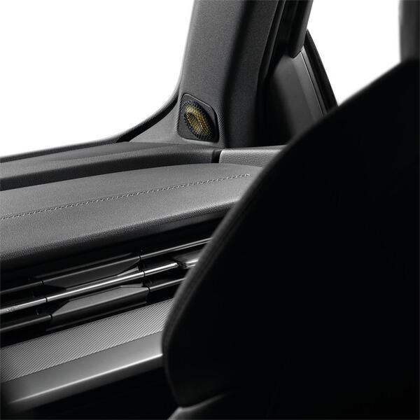 The inverted dome TKME tweeters also feature an aramid fibre dome. Their exclusive ‘M’-shaped profile helps to improve control of cone deformation and to reproduce the high frequencies smoothly and accurately. The tweeters can be mounted in different ways: in the factory locations, flush or on angled brackets, for all-encompassing installation options. The kit is also supplied with aluminium grilles.