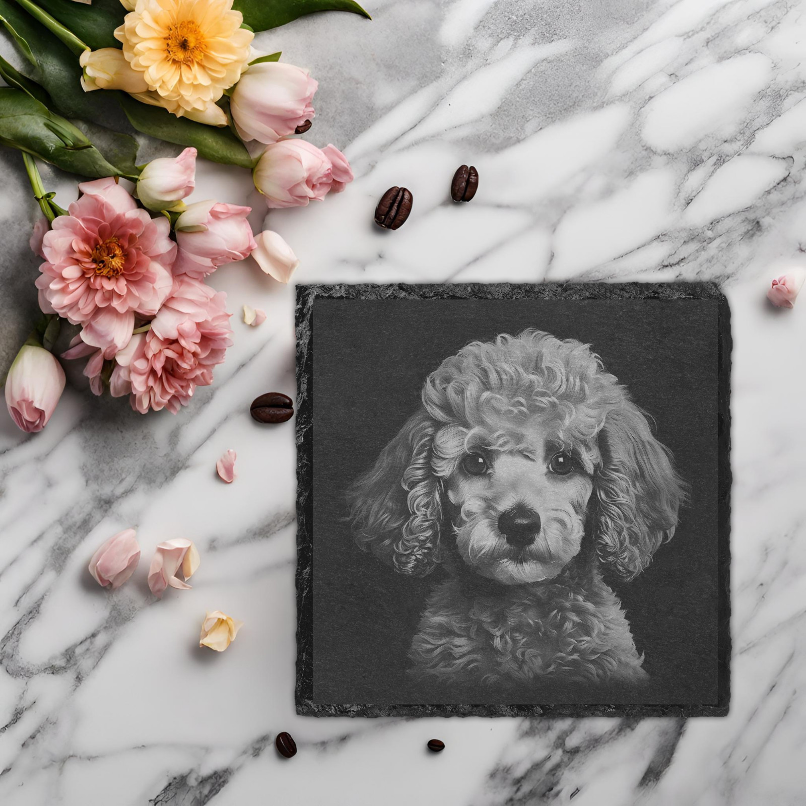 Add a touch of canine charm to your Father's Day celebrations with this engraved slate coaster. Featuring an adorable Poodle Dog design, this square or round coaster is the perfect addition to any home bar or dining table.
