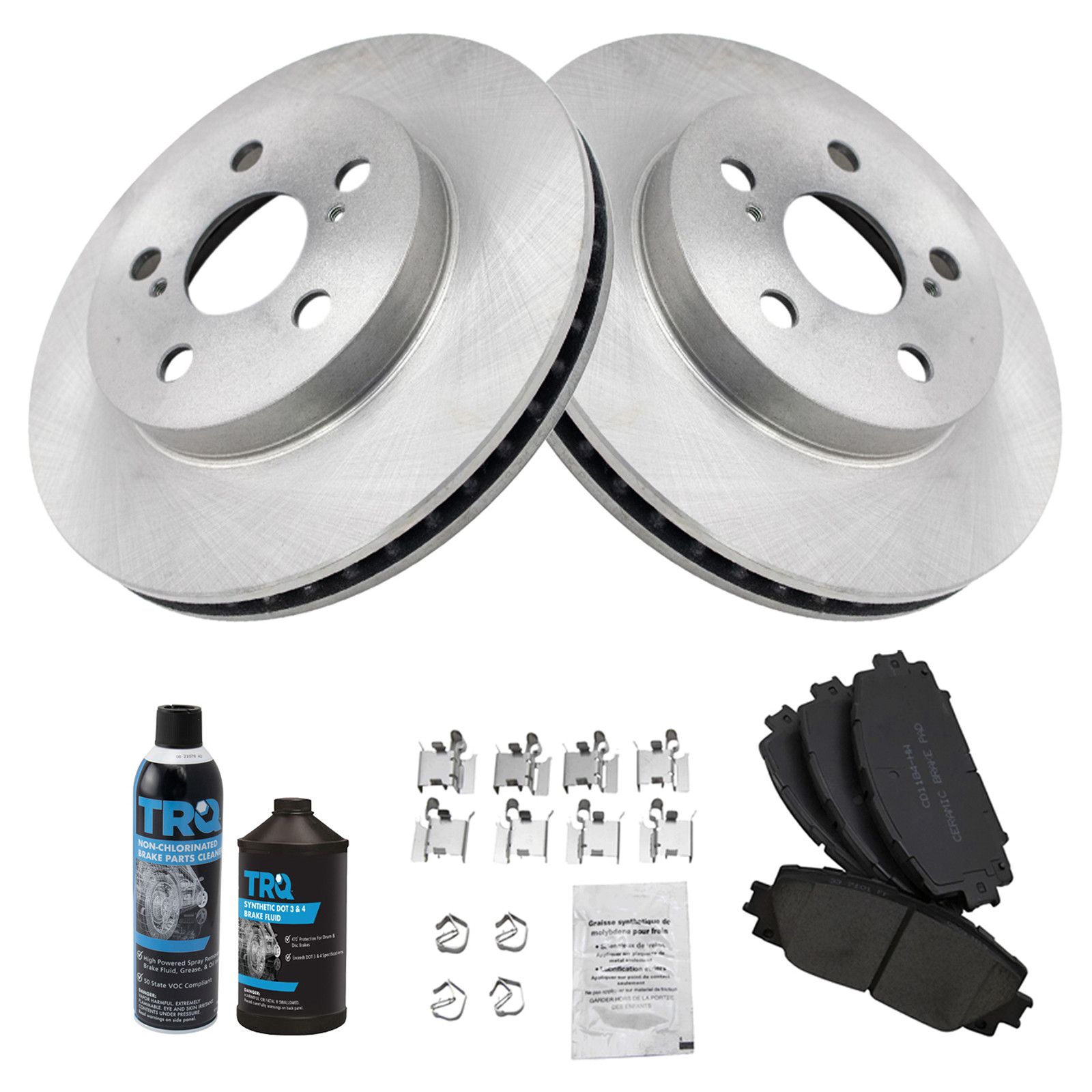 Kit Includes:(1) 13 oz Non-Chlorinated 50 State Formula Brake Cleaner, Kit Includes:(1) Front Ceramic Brake Pad Set with Contact Point Grease & Hardware, Kit Includes:(1) 12 oz DOT 3 & 4 Brake Fluid, Kit Includes:(2) Front Brake Rotors