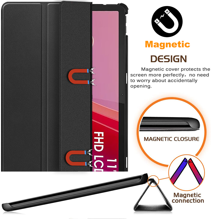 - Magnetischer Verschluss, mit der dreifach gefalteten Vorderabdeckung kann das Tablet als Ständer zum Ansehen von Videos oder als Tastaturständer genutzt werden.