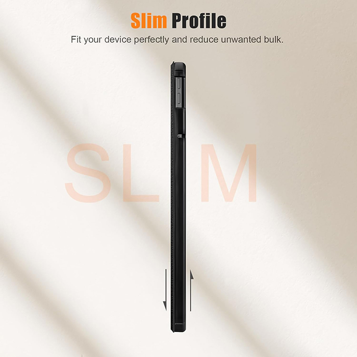 - Durch den eingebauten magnetischen Streifen wird beim Öffnen/Schließen der Hülle der Ruhezustand automatisch aktiviert/deaktiviert, um Strom zu sparen.