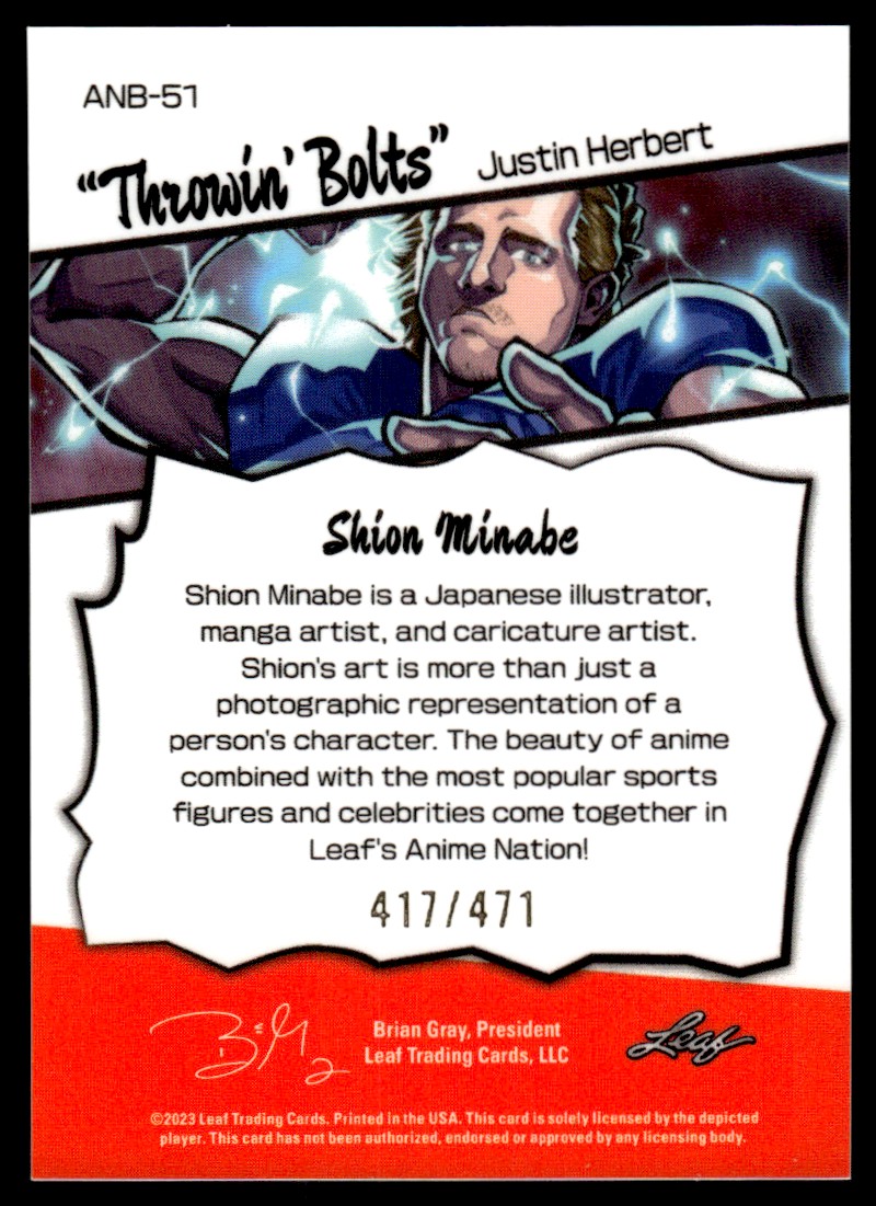 | Justin Herbert THROWIN BOLTS 2023 LEaf #ANB-51 Football Card /471 ANIME NATION |