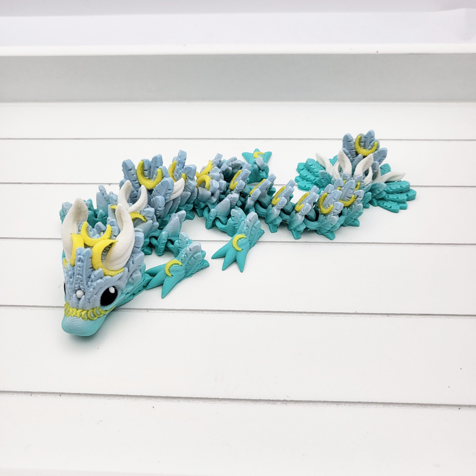 Available in a range of colours to suit your personal style, simply pick your desired colour in the dropdown box. Moons on the dragon will be yellow unlesss you specify that you want them in a different colour.