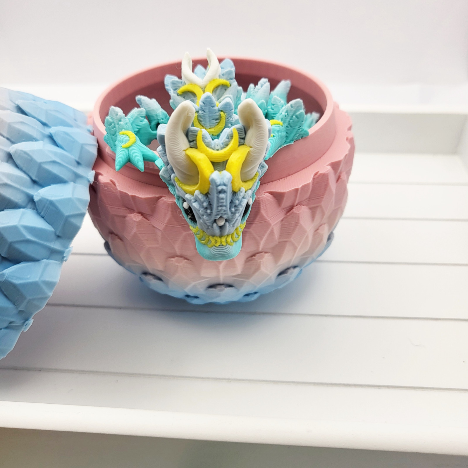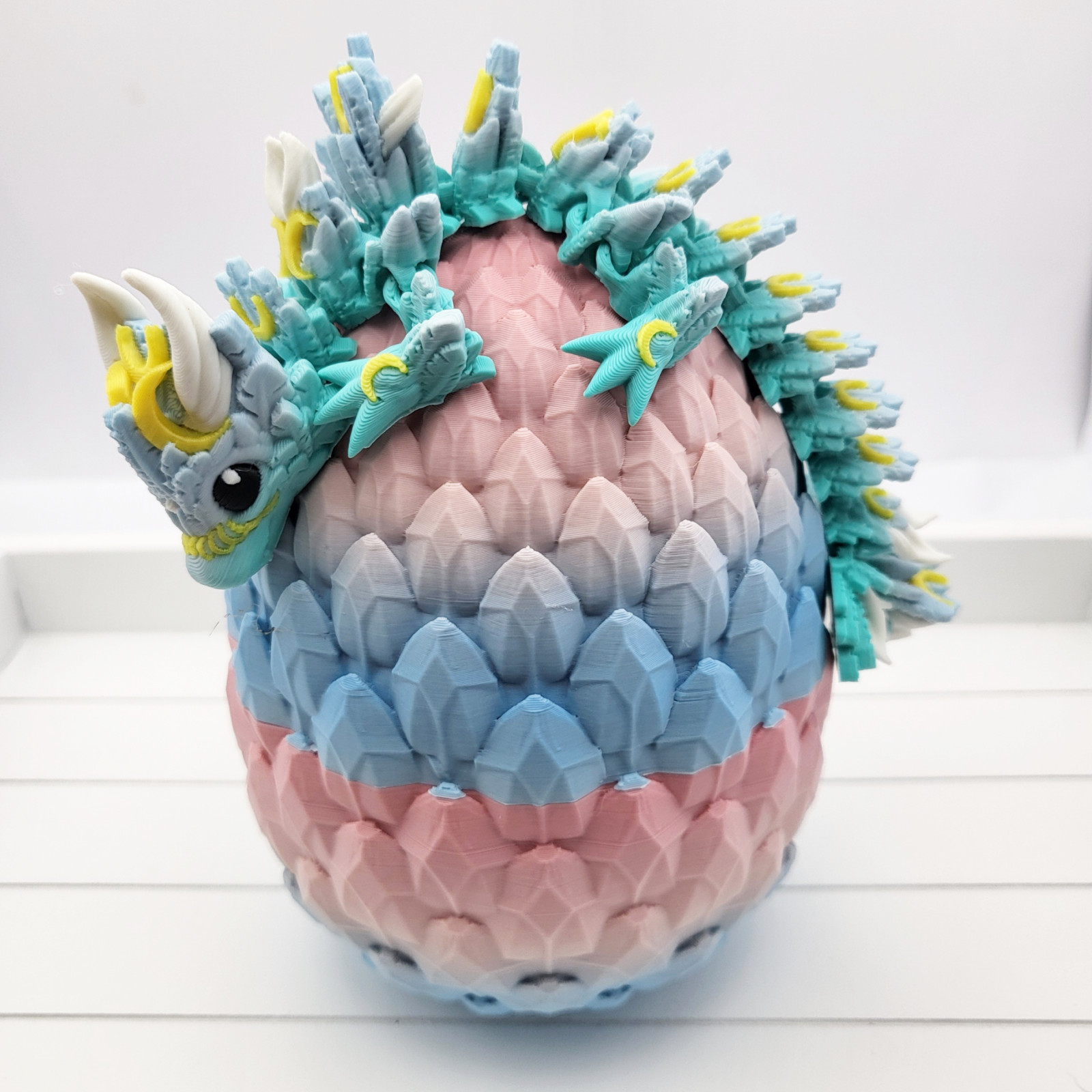Transform your space into a mystical realm with this exquisite 3D Printed Baby Luna Dragon and Dragon Scale Egg. Crafted with precision, this one-of-a-kind piece adds a unique touch to any room. Bring out your inner adventurer and create a captivating atmosphere with this stunning decor.