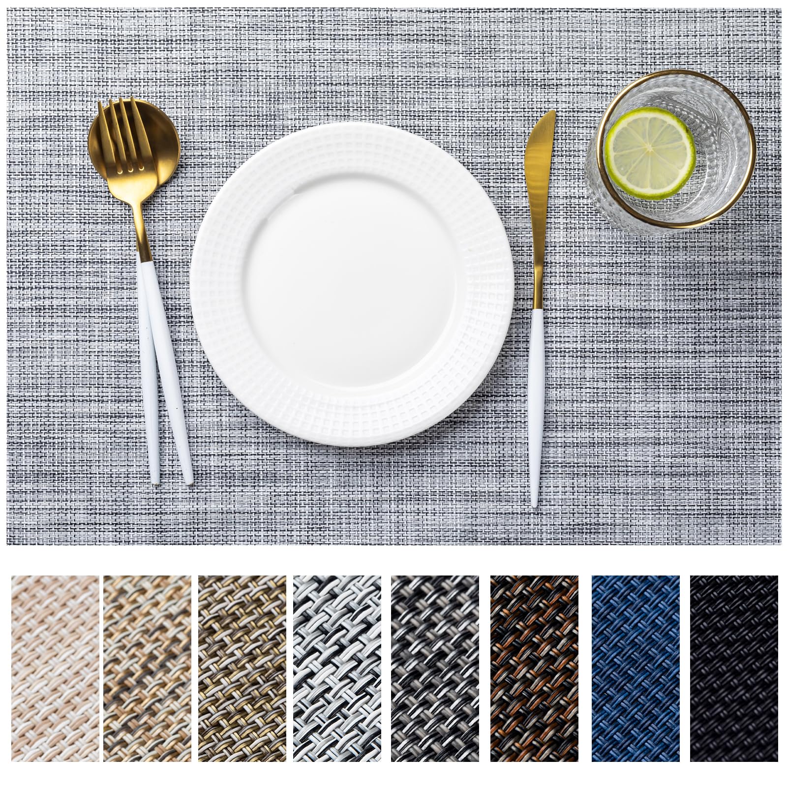 • HEAVY-DUTY:We uses the German-imported higher grammage vinyl material (Specialty PVC)other placemats on the market,plus the precise,dense weave craftsmanship to give the woven placemats a thicker feel and make the place mats long-lasting.