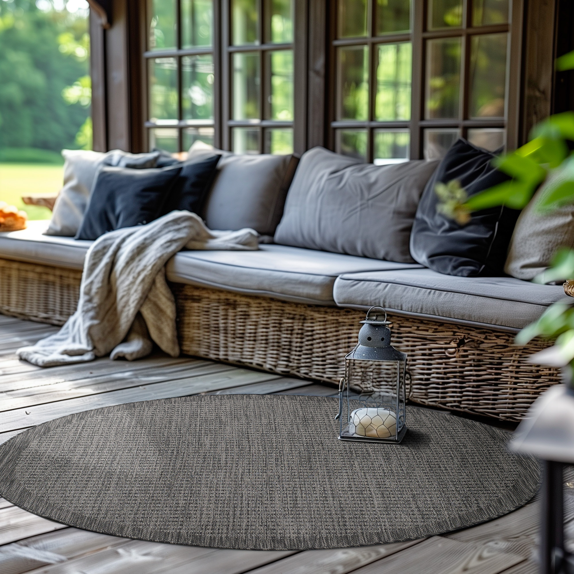 Die einfarbige Gestaltung macht den Teppich zu einem vielseitigen Begleiter für jede Art von Außendekoration, sei es in einem modernen oder traditionellen Stil. Er ist in verschiedenen Größen verfügbar, um eine perfekte Anpassung an Ihren spezifischen Raum zu ermöglichen, und in mehreren Farboptionen erhältlich, die von natürlichen Tönen bis hin zu lebendigeren Farben reichen.